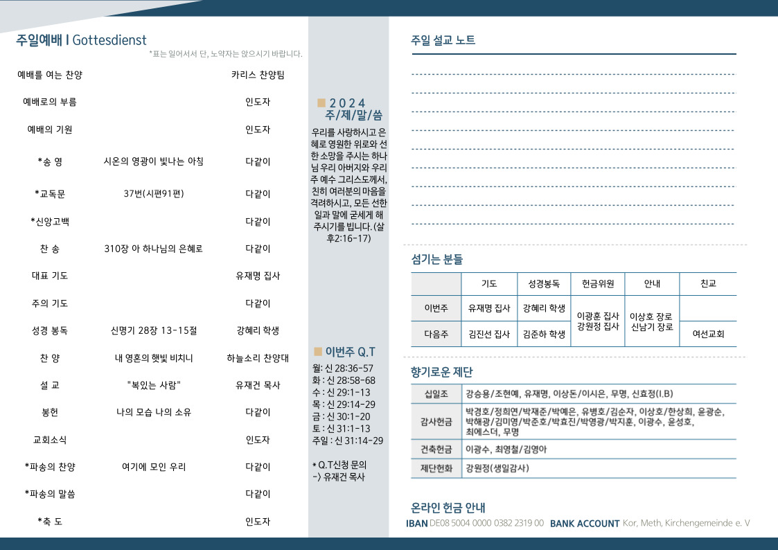 2024년 4월 14일 예배 주보